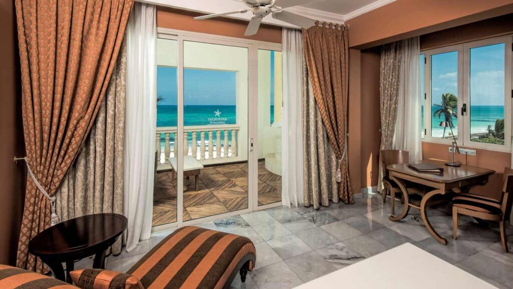 The accommodations at Iberostar Grand Paraíso are designed to combine elegance with comfort. Suites feature spacious layouts, marble bathrooms, private balconies, and ocean or garden views. The design blends classic architecture with modern amenities, ensuring a luxurious yet cozy experience.